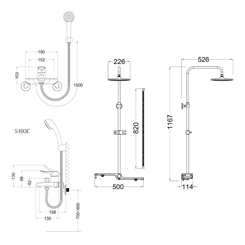 Bộ sen cây tắm đứng nóng lạnh Caesar BS126+S493C sở hữu chiều cao thân sen lên đến 1167 mm, kích thước bát sen rộng 226 mm, tạo cảm giác thoải mái và thư giãn tối đa khi sử dụng. Sản phẩm được trang bị kệ đựng đồ tiện lợi, giúp tối ưu không gian lưu trữ và giữ cho phòng tắm luôn gọn gàng.