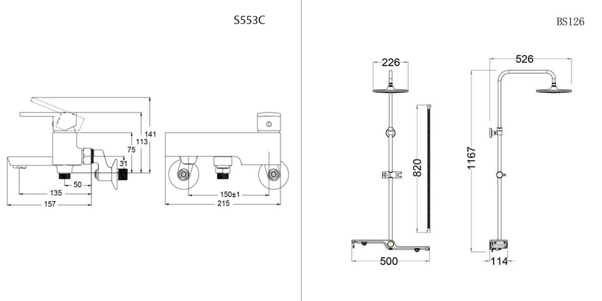 Bộ sen cây tắm đứng nóng lạnh Caesar BS126+S553C được sản xuất tại Việt Nam với chất liệu đồng cao cấp, bề mặt mạ Crom/Nikel bền bỉ và sang trọng. Sản phẩm bao gồm củ sen nóng lạnh S553C và sen cây tắm đứng BS126, đem đến trải nghiệm tắm tuyệt vời.