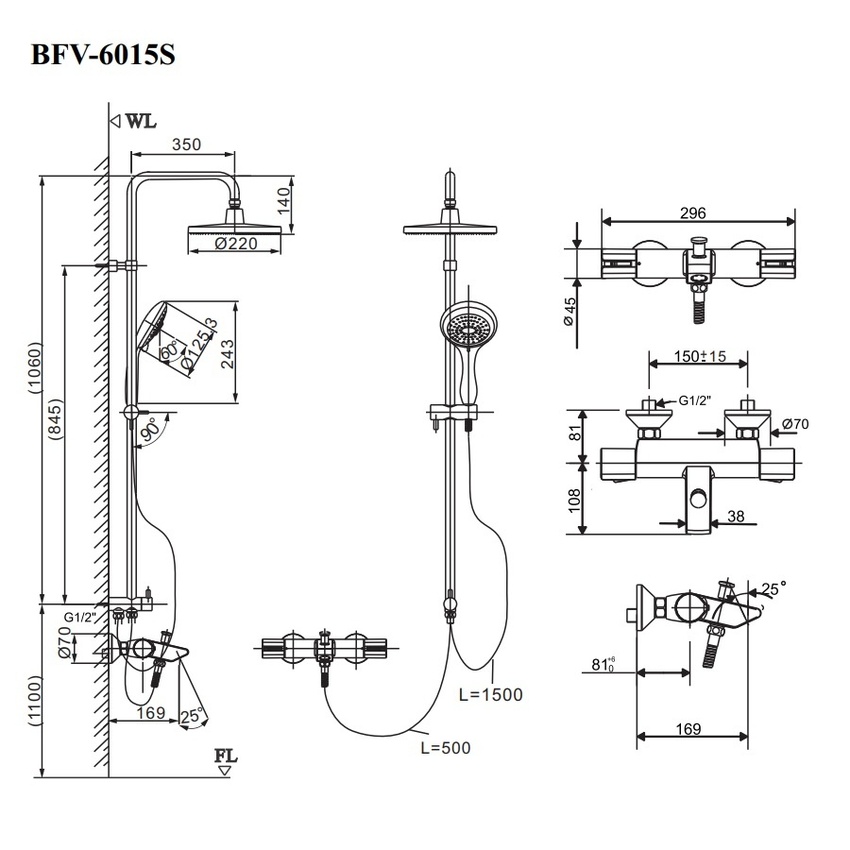 Mô Tả Sản Phẩm: Bộ Sen Cây Tắm Đứng Ổn Nhiệt INAX BFV-6015S