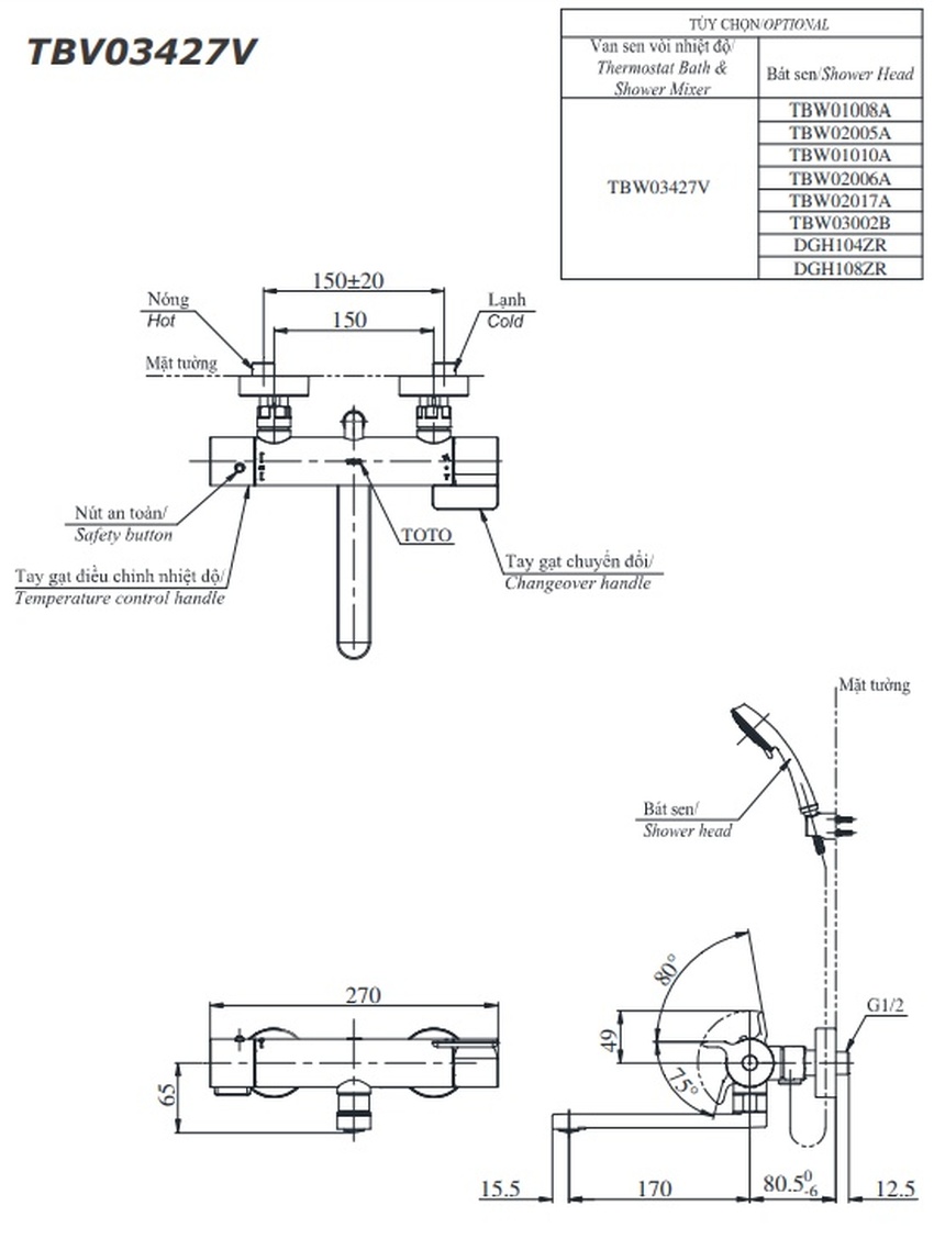 Bộ sen tắm nhiệt độ TOTO TBV03427V TBW02005V – Tinh hoa công nghệ và thiết kế