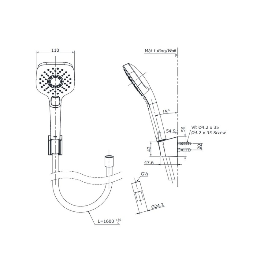 - Ba chế độ phun nước linh hoạt cho cảm giác tắm thú vị.