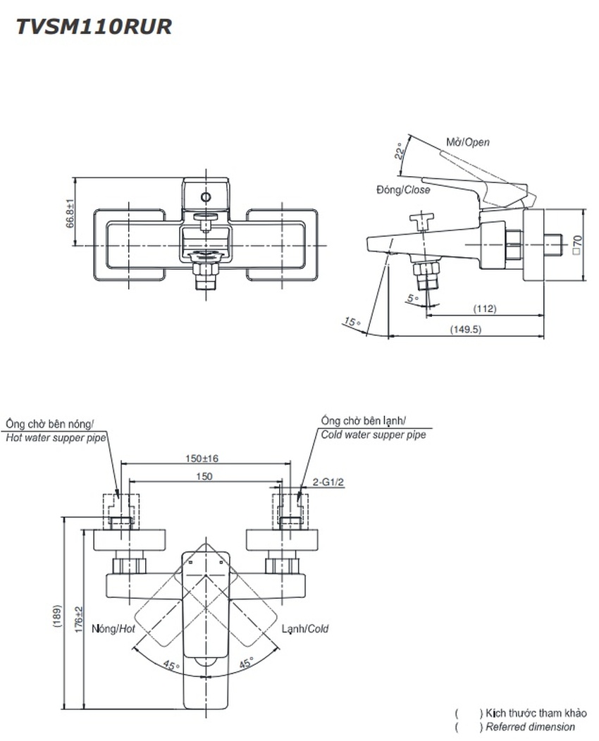 Bộ sen tắm nóng lạnh TOTO TVSM110RUR TBW02006V (3 chế độ)