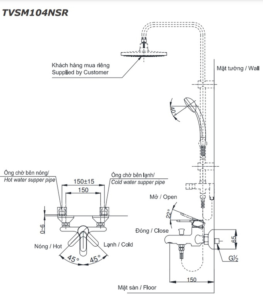 Thiết kế có khả năng hoạt động tốt trong áp lực nước từ 0.05 MPa đến 0.75 MPa, sản phẩm đảm bảo lưu lượng nước mạnh mẽ và ổn định. Ngoài ra, TVSM104NSR còn sở hữu vòi sen tay với nhiều chế độ phun, phục vụ hoàn hảo cho nhu cầu sử dụng đa dạng của gia đình bạn.