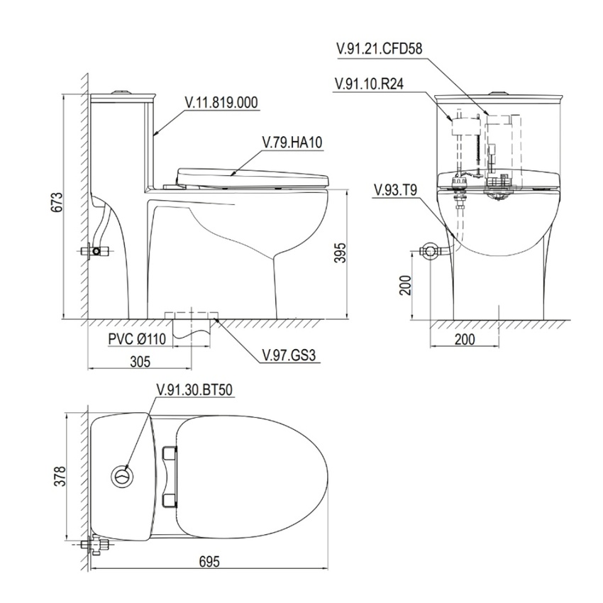 Hệ thống xả xoáy giúp xả nước mạnh mẽ và tiết kiệm với mức tiêu thụ chỉ 6/3L. Đặc biệt, bồn cầu đi kèm với vòi xịt vệ sinh VG826, tăng cường tiện ích và đảm bảo vệ sinh tối ưu.
