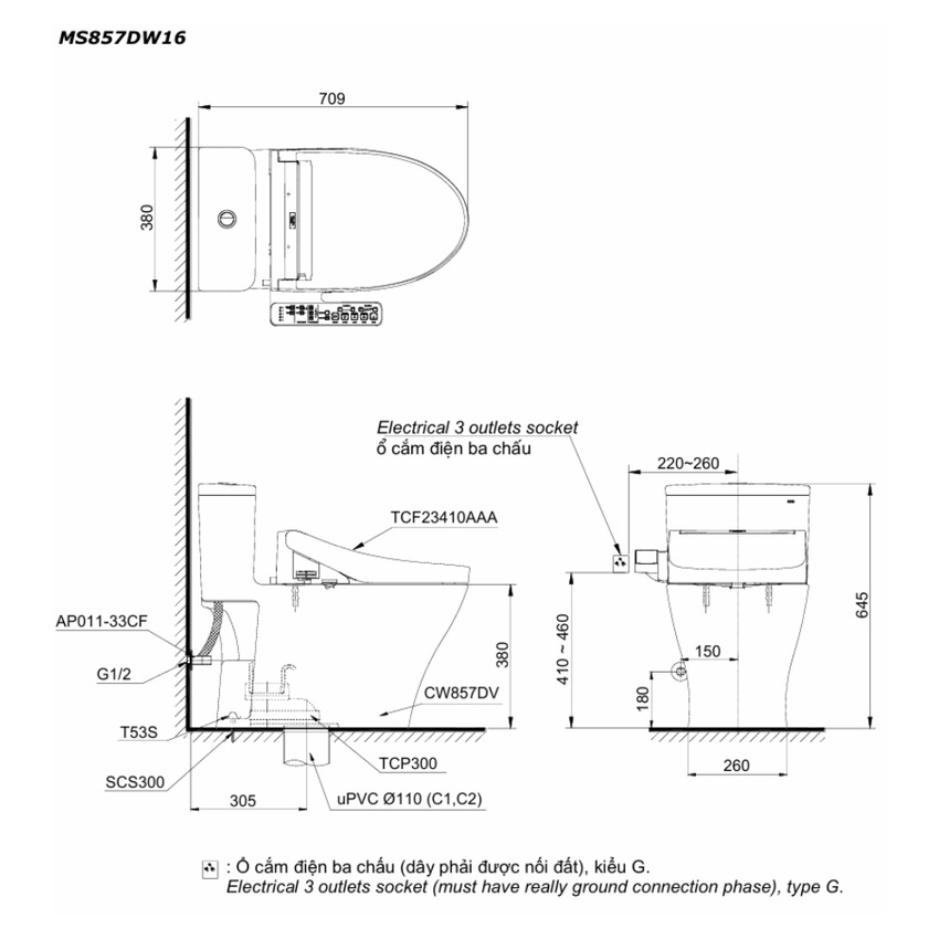 Bồn Cầu 1 Khối TOTO MS857DW16 Nắp Điện Tử Washlet C2 – Sự Lựa Chọn Hoàn Hảo Cho Ngôi Nhà Của Bạn