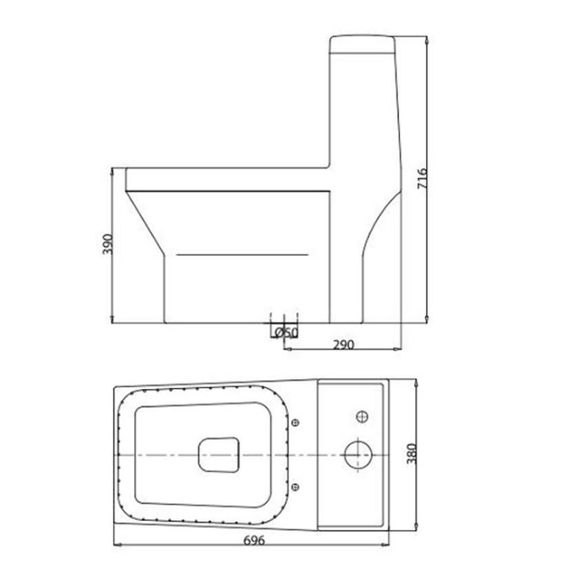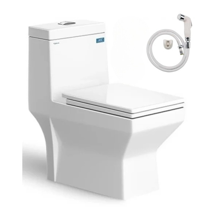 Sản phẩm nổi bật với thiết kế liền khối, kiểu dáng vuông vức độc đáo. Màu sắc trắng trang nhã cùng công nghệ Ag+ Ceramic chống bám bẩn giúp giữ cho bồn cầu luôn sạch sẽ, dễ dàng vệ sinh. Nắp bồn cầu được chế tạo từ nhựa PP cứng cáp, có độ bền cao, ít trầy xước và cực kỳ dễ lau chùi.