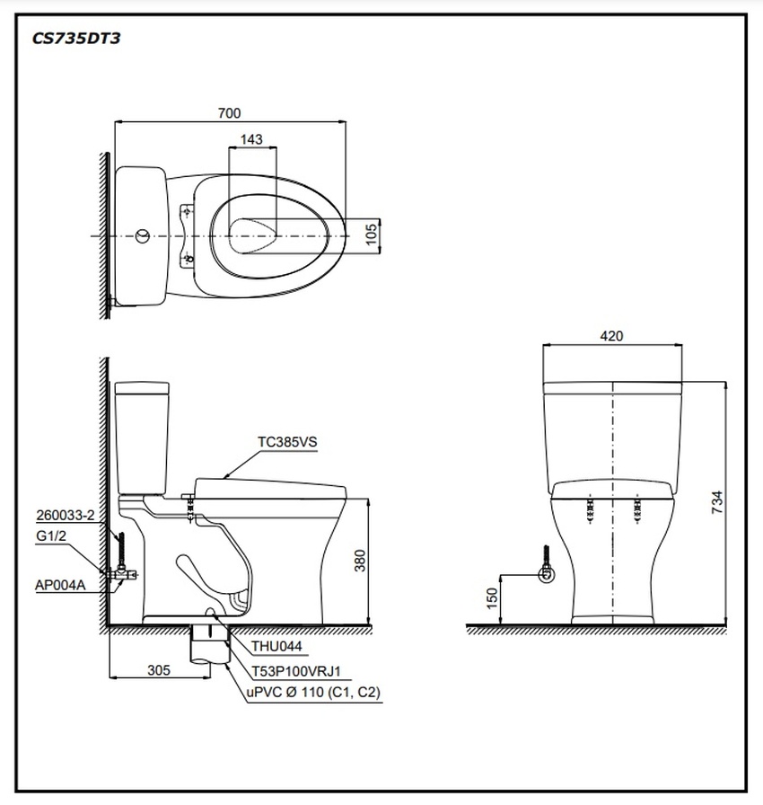 Bồn cầu 2 khối TOTO CS735DT3 nắp đóng êm TC385VS không chỉ đơn thuần là một thiết bị vệ sinh mà còn là sản phẩm mang lại trải nghiệm sống hoàn hảo, tiện nghi cho ngôi nhà của bạn.