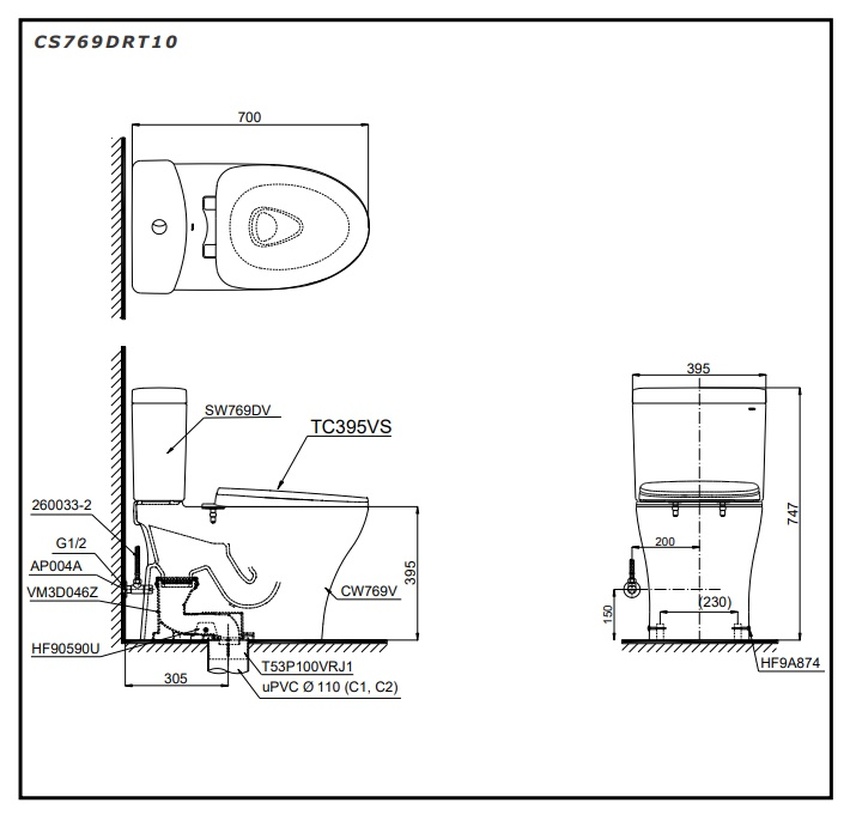 Khám phá Bồn cầu 2 khối TOTO CS769DRT10 nắp đóng êm TC395VS, thiết kế hiện đại, vận hành êm ái, giúp không gian phòng tắm của bạn thêm sang trọng và tiện nghi.