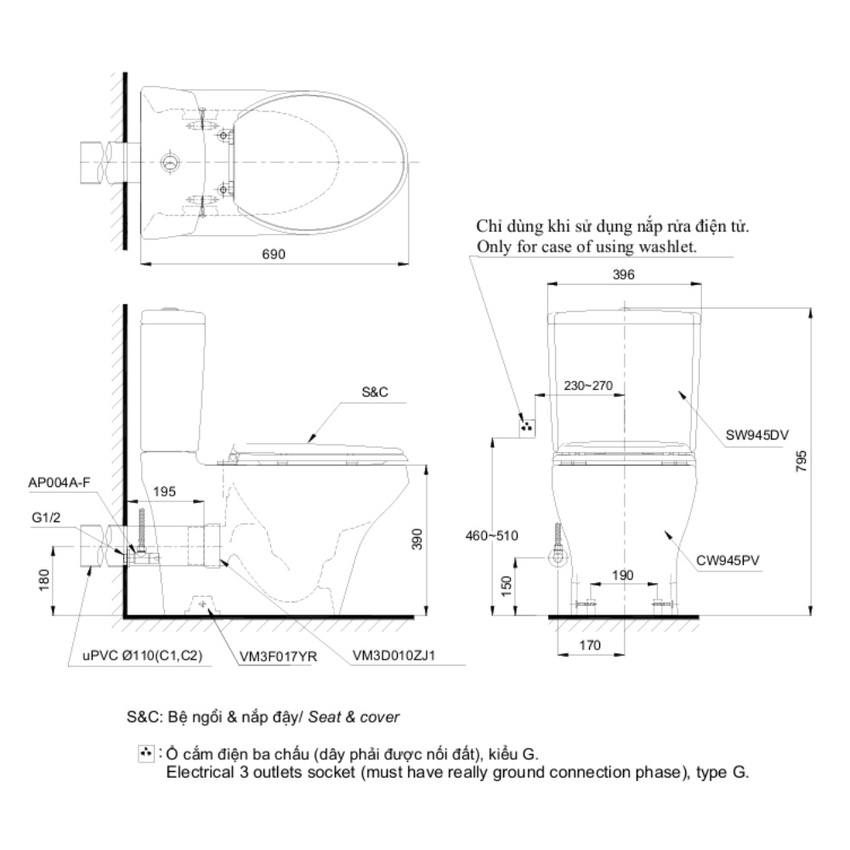 - Công nghệ xả mạnh mẽ, tiết kiệm nước và thân thiện với môi trường.
