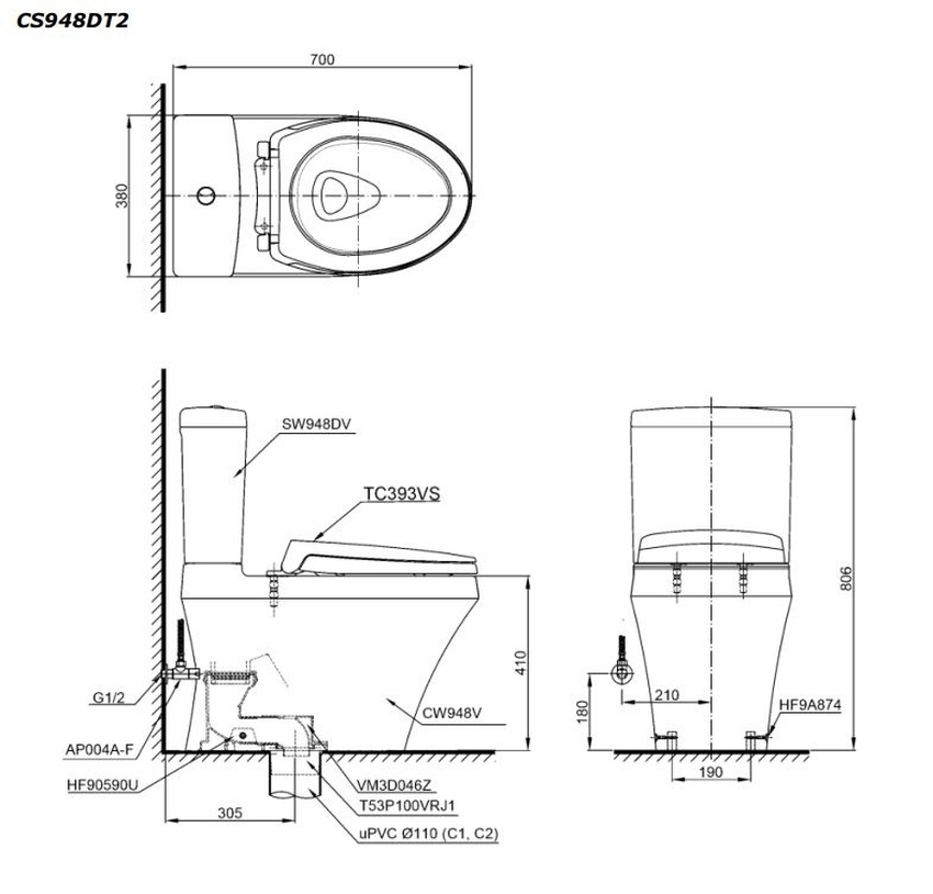 Khám phá bồn cầu 2 khối TOTO CS948DT2 nắp đóng êm TC393VS, thiết kế hiện đại, tiện lợi, phù hợp mọi không gian, mang lại trải nghiệm hoàn hảo cho gia đình bạn.