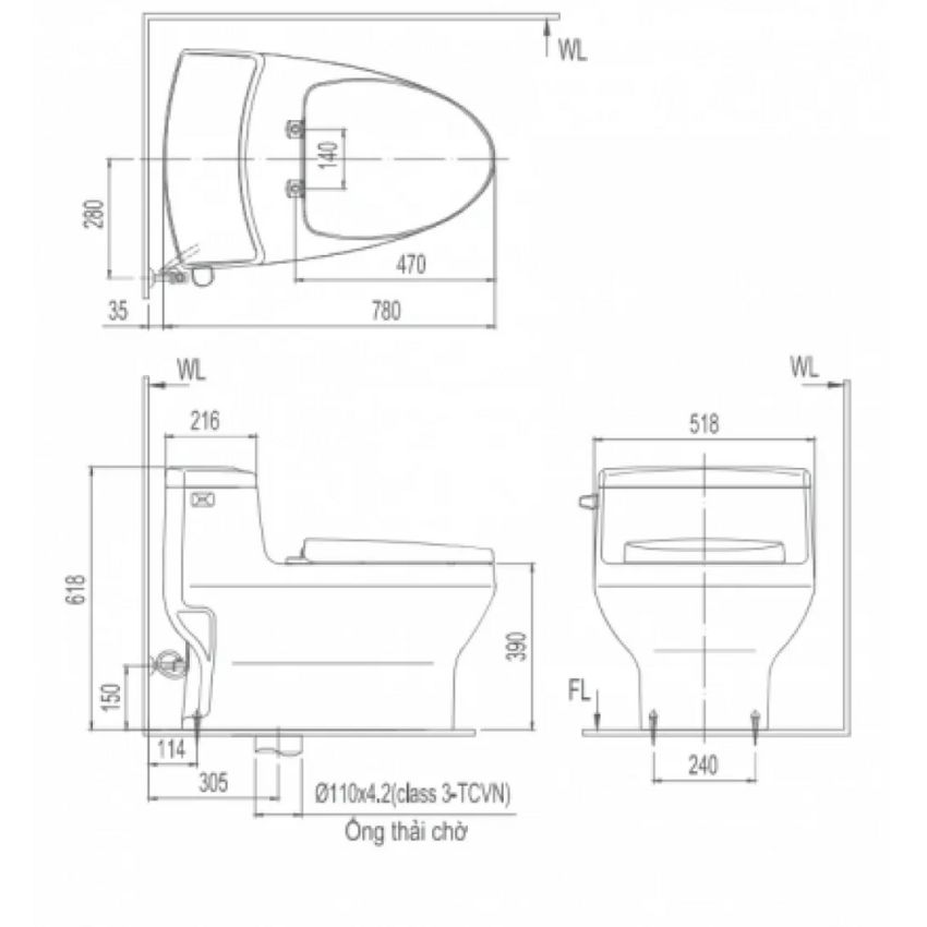 Bồn Cầu INAX AC-4005VN Một Khối Aqua Ceramic – Sự Lựa Chọn Hoàn Hảo Cho Phòng Tắm Hiện Đại