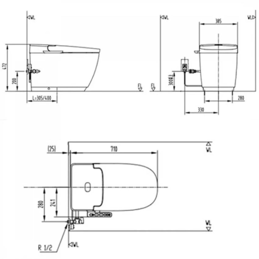 - Tiện nghi: bệ ngồi sưởi ấm, khử mùi tức thì, phù hợp nhu cầu gia đình hiện đại.