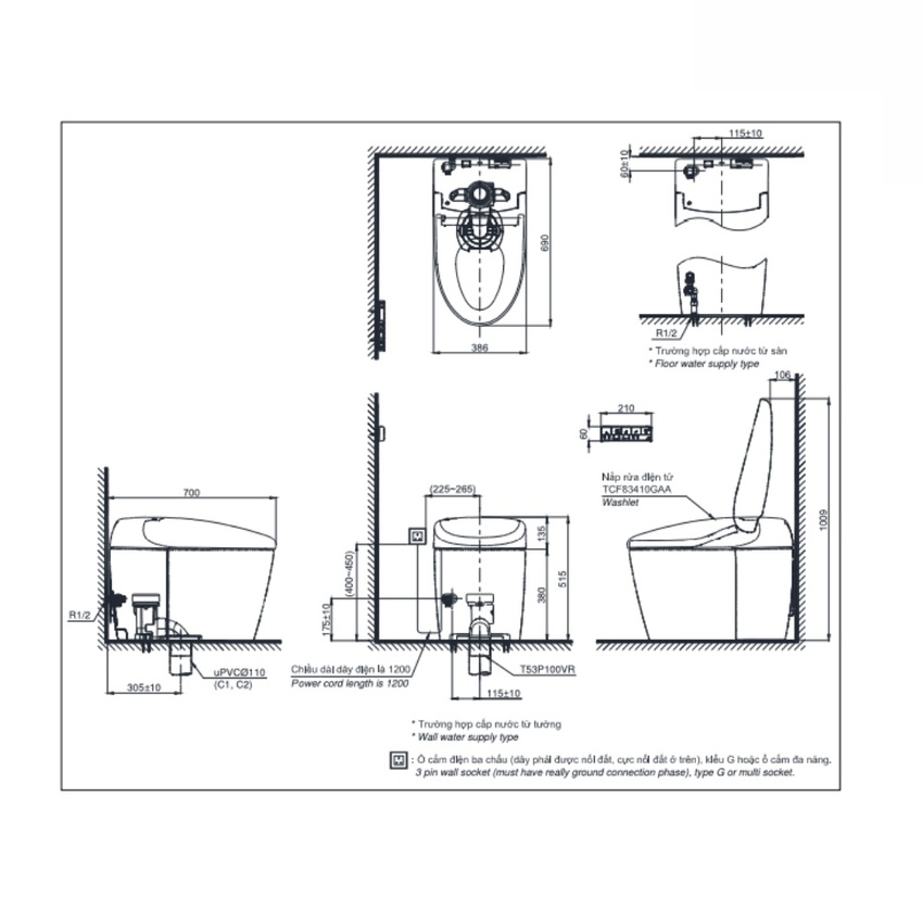 - Nắp rửa điện tử tiện lợi với chức năng sưởi ấm, khử mùi.