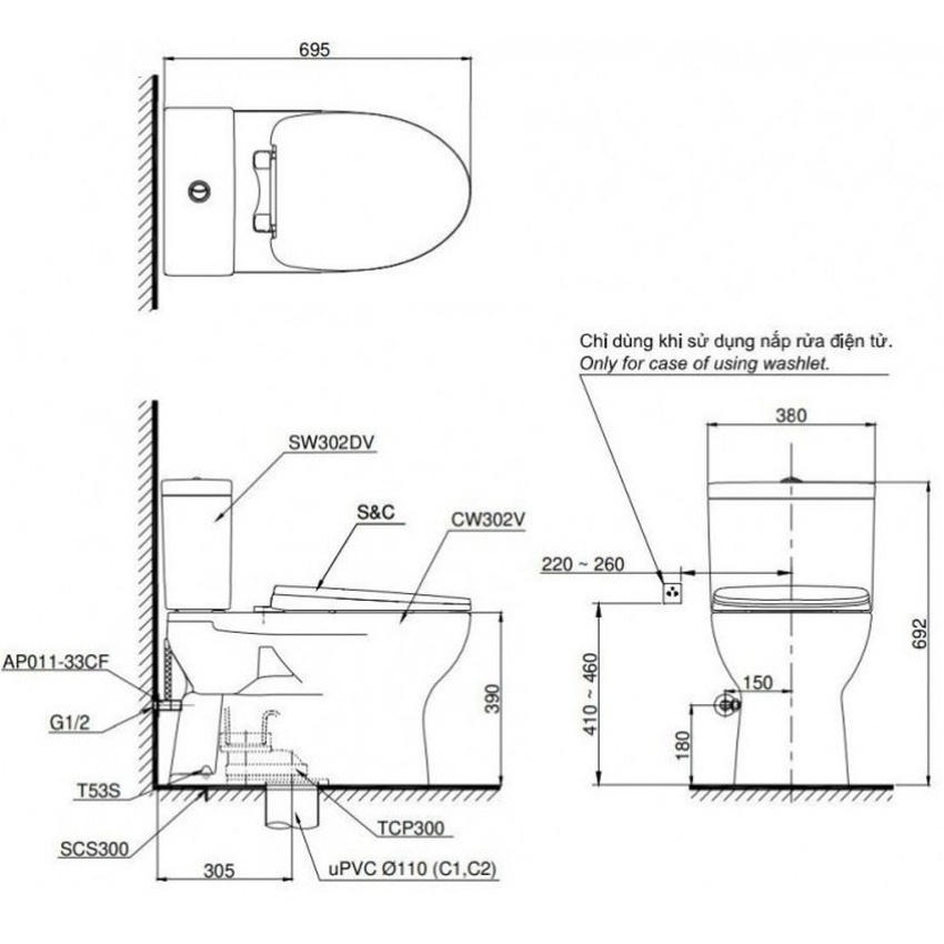 Bồn cầu TOTO CS302DE4: Sự Lựa Chọn Hoàn Hảo Cho Phòng Tắm Hiện Đại
