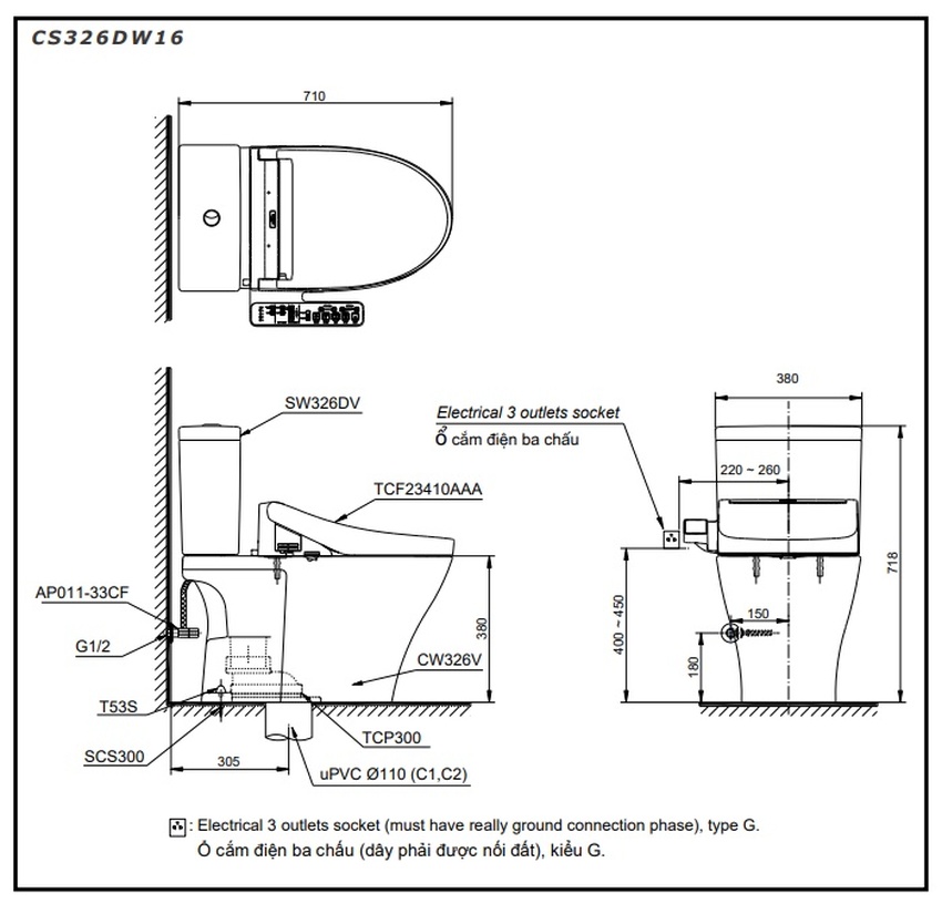 - Nắp điện tử Washlet C2 với các chức năng thông minh như vòi rửa đa chức năng, sấy khô và điều khiển từ xa.