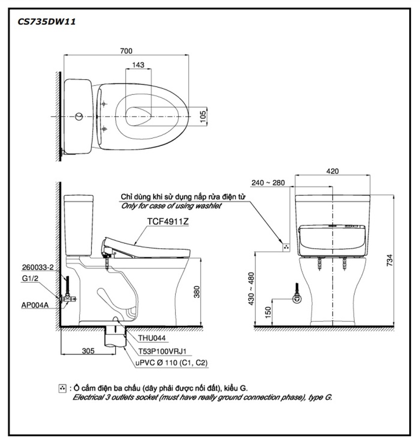 Giới thiệu về Bồn Cầu TOTO CS735DW11