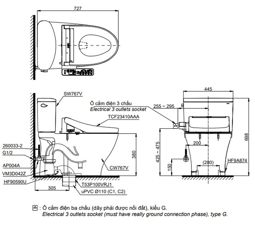 Bồn cầu TOTO CS767RW16 kết hợp hoàn hảo với nắp điện tử Washlet C2 TCF23410AAA, là sự lựa chọn lý tưởng cho phòng tắm hiện đại. Sản phẩm từ thương hiệu TOTO danh tiếng, nổi tiếng về chất lượng vượt trội và công nghệ tiên tiến.