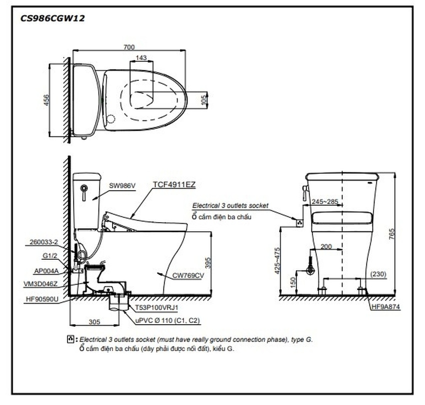 Trải Nghiệm Tiện Ích Tuyệt Vời Với Bồn Cầu TOTO CS986CGW12