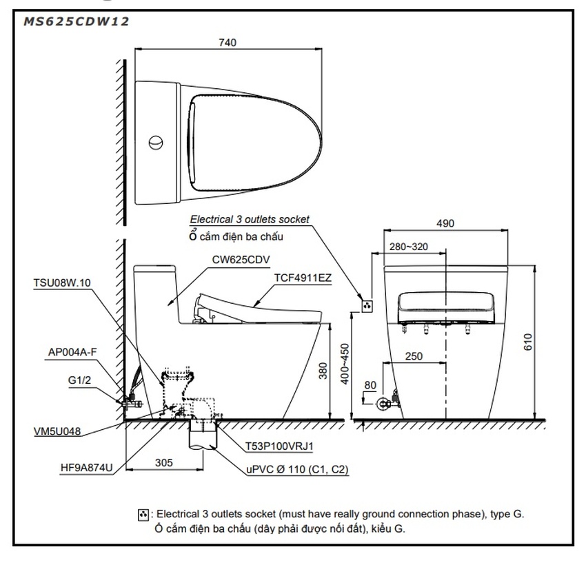 Bồn cầu TOTO MS625CDW12.