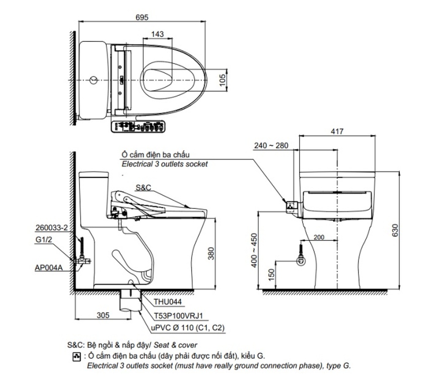 - Nắp điện tử Washlet C2 tự động vệ sinh, sấy khô, khử mùi.