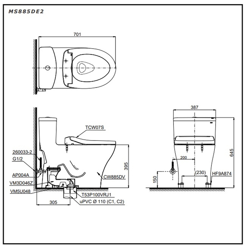 Bồn cầu TOTO MS885DE2 kết hợp nắp rửa cơ TCW07S là lựa chọn hoàn hảo cho những gia đình đang tìm kiếm sản phẩm tiện lợi và sang trọng. Với thiết kế hiện đại, chất liệu sứ cao cấp cùng những tính năng ưu việt, sản phẩm giúp nâng tầm không gian phòng tắm của bạn.