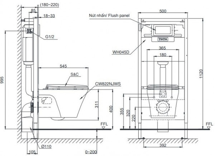 - Hệ thống xả tiết kiệm nước và vận hành êm ái.