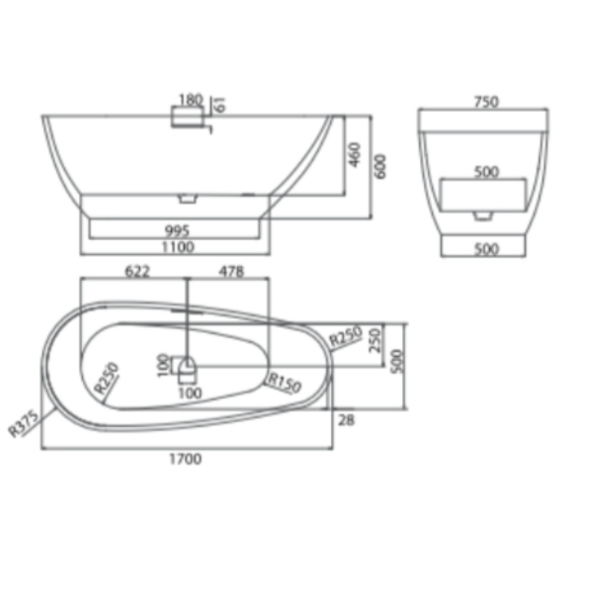 Sản phẩm có kích thước 1700x750x600 mm, trọng lượng 60kg, và thể tích chứa lên đến 289L, phù hợp với mọi không gian phòng tắm hiện đại. Nút nhấn xả bằng đồng mạ Chrome tạo điểm nhấn tinh tế và chống han gỉ hiệu quả.