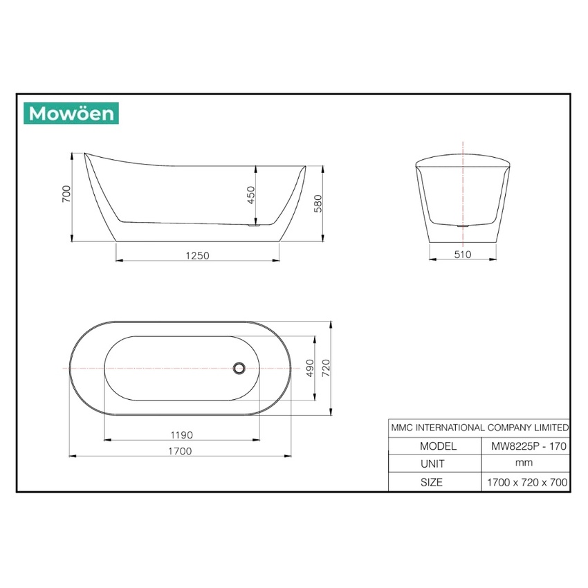 Khám Phá Sản Phẩm Bồn Tắm Đặt Sàn 1.7m MOWOEN MW8225P-170