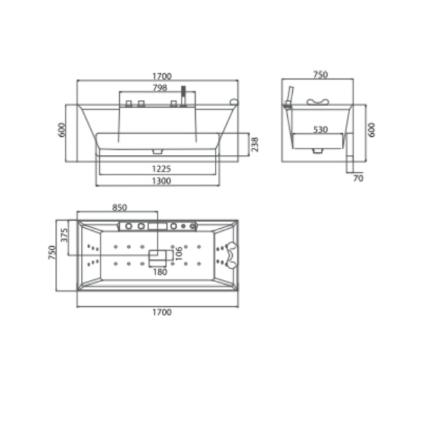 Khám Phá Sự Tiện Nghi Với Bồn Tắm Đặt Sàn Massage 1.7m DIAMOND MOWOEN MWM001.MS-Matt White