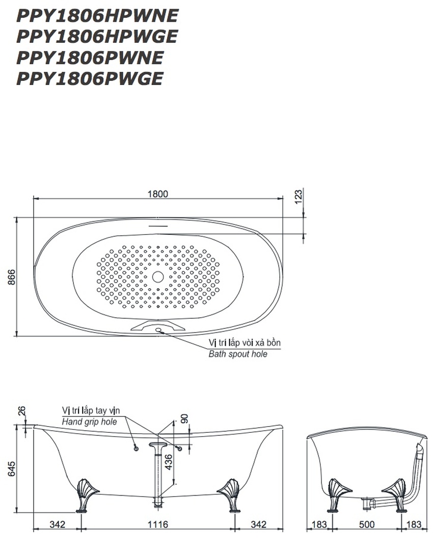 Mô Tả Chi Tiết Bồn Tắm TOTO PPY1806PWNE#P
