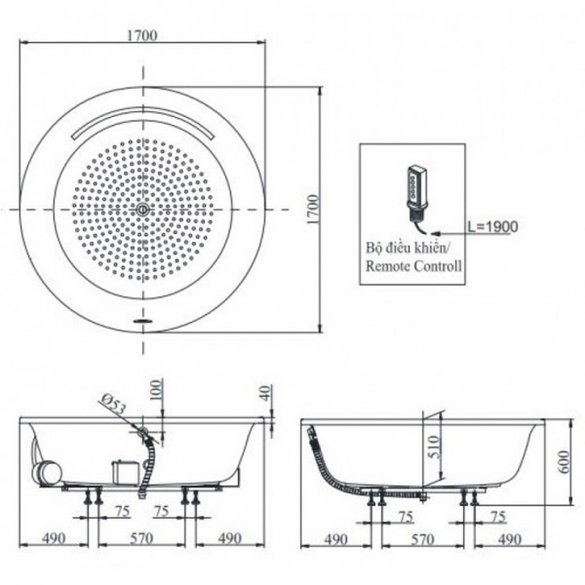 | Hệ thống massage | Bằng khí với vòi phun nước mạnh mẽ |