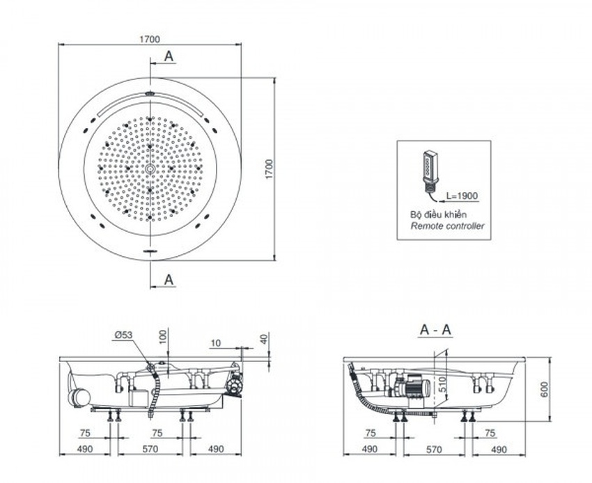| Tính năng massage | Hệ thống sục khí và sục nước |