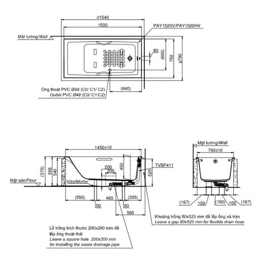 Mô Tả Sản Phẩm Bồn Tắm TOTO PAY1520HV#W