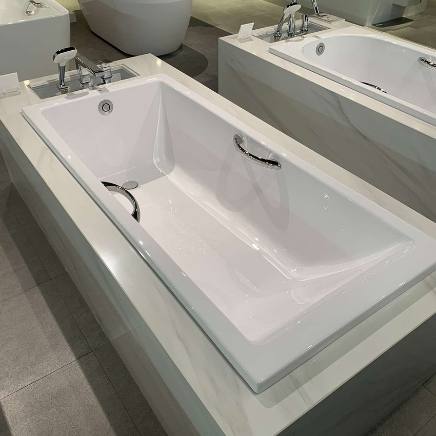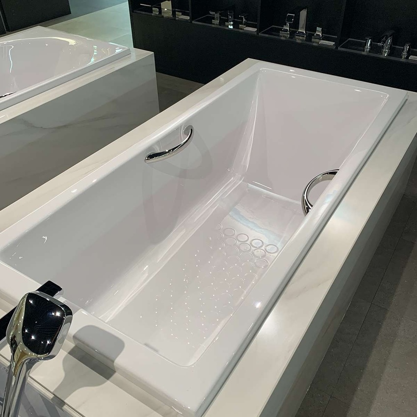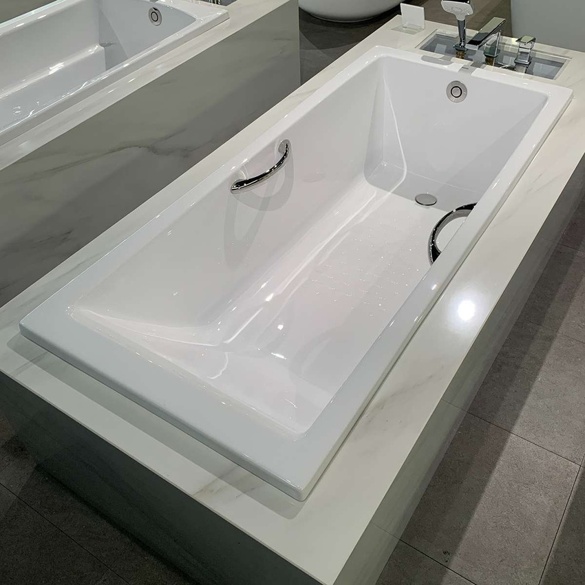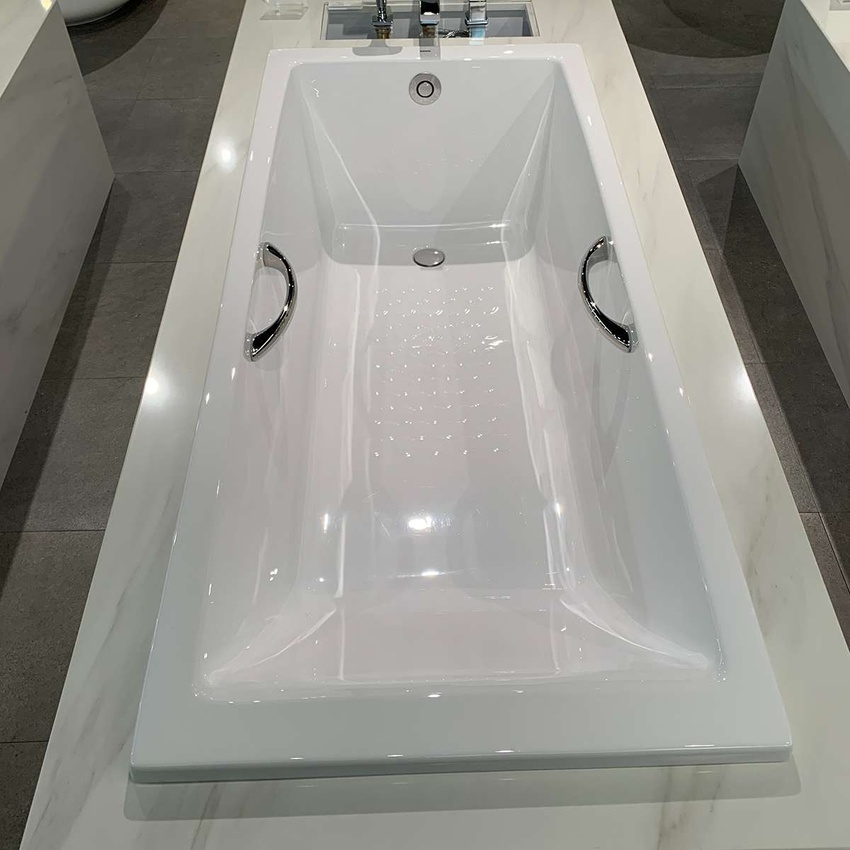 Mẫu bồn tắm này nổi bật với tay vịn tiện lợi, giúp người dùng ra vào dễ dàng và an toàn. Không chỉ vậy, thiết kế sáng màu trắng tinh khôi, dễ dàng hòa quyện với mọi phong cách nội thất phòng tắm.