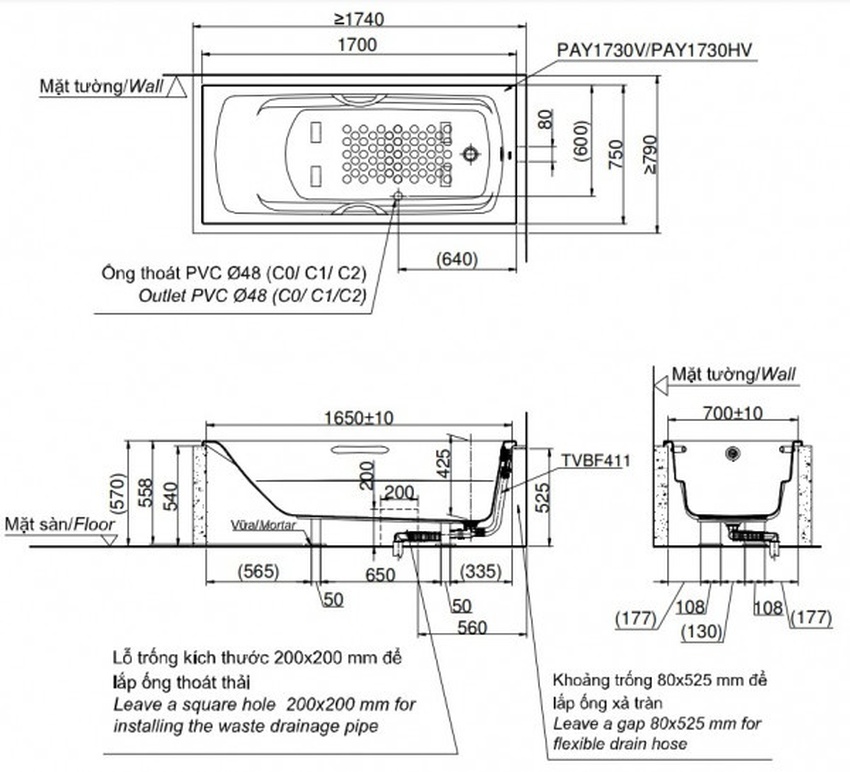 Bồn tắm TOTO PAY1730HV#W – Sang Trọng và An Toàn Cho Mọi Phòng Tắm