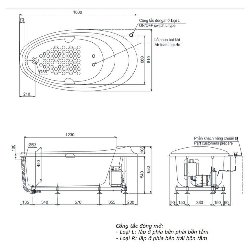 Kích thước dài 1.6 mét của bồn tắm giúp bạn dễ dàng bố trí trong không gian phòng tắm vừa và nhỏ. Đặc biệt, thiết kế tay vịn an toàn, hỗ trợ tối đa cho người dùng trong việc ra vào bồn tắm, nhất là đối với người cao tuổi và trẻ em.