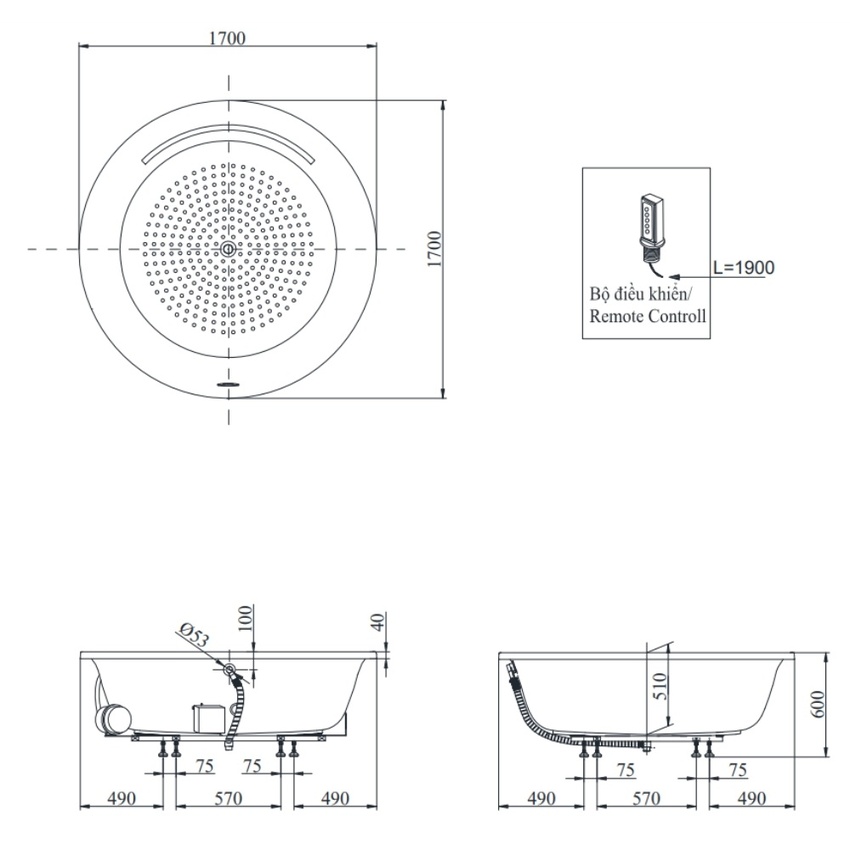 | Kích thước | 1700 mm |