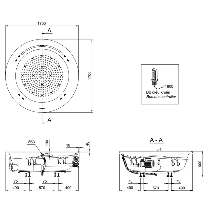 Thiết kế dài 1m7 của bồn tắm không chỉ phù hợp với nhiều không gian phòng tắm khác nhau mà còn tạo cảm giác thoải mái, rộng rãi. Hệ thống massage tích hợp là điểm nổi bật giúp giảm căng thẳng, cải thiện tuần hoàn máu và mang lại trải nghiệm thư giãn đầy đủ nhất.