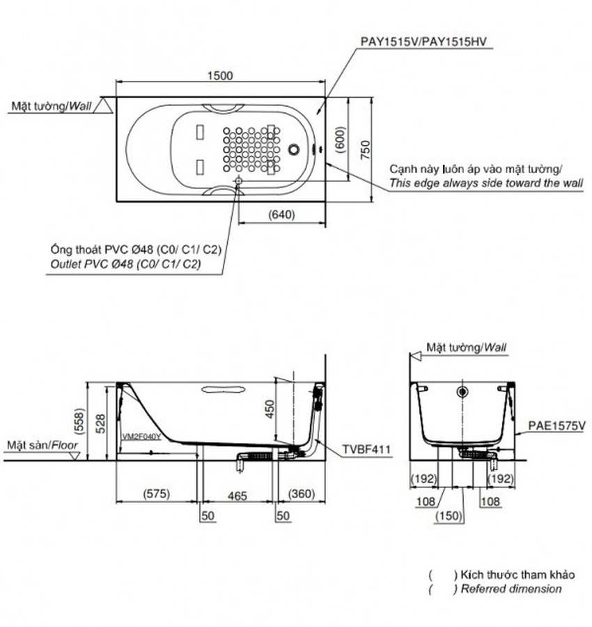 Mô tả sản phẩm Bồn tắm yếm TOTO PAY1515VC#W