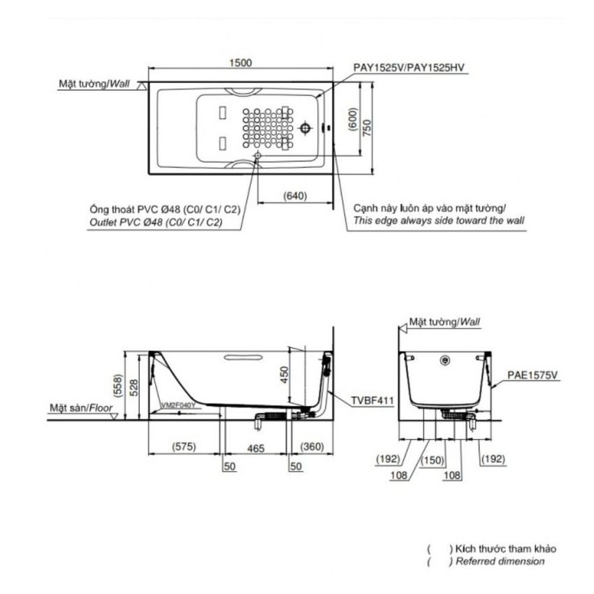 Mô tả sản phẩm bồn tắm yếm TOTO PAY1525HVC#W TVBF411
