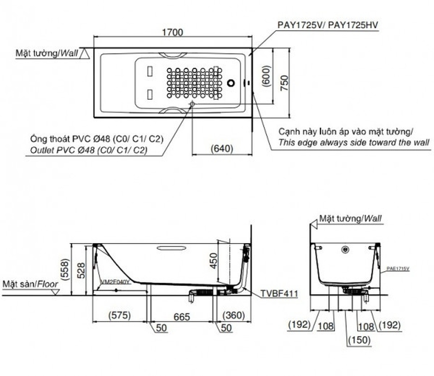 Khám Phá Bồn Tắm Yếm TOTO PAY1725HVC#W Nhựa 1m7 Tay Vịn