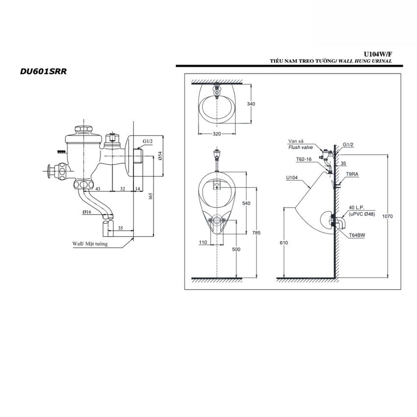 Giới thiệu Bồn Tiểu Nam TOTO U104W/F DU601SRR Treo Tường Kèm Van Xả Nhấn