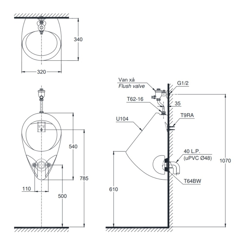 Bồn tiểu nam TOTO U104W/F treo tường – Sự lựa chọn hoàn hảo cho không gian vệ sinh
