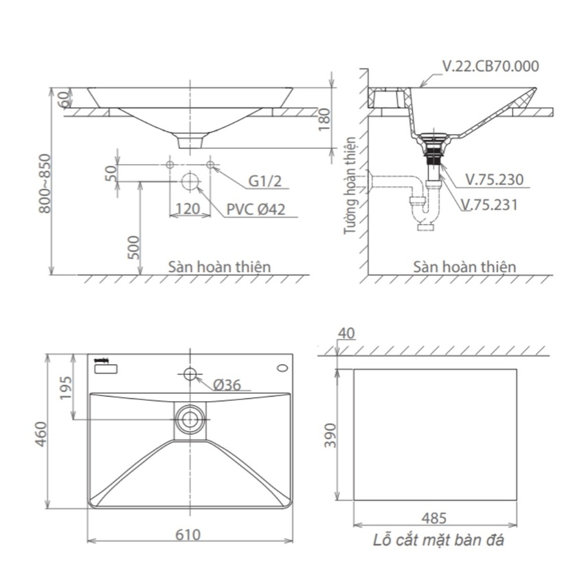Khám Phá Chậu Lavabo Đặt Bàn Viglacera CB70