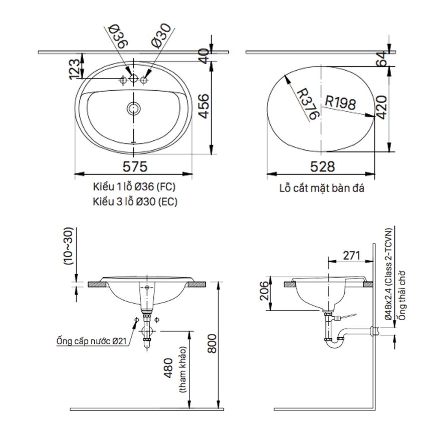 Kiểu lắp đặt | Dương vành trên bàn đá, với tùy chọn 1 lỗ hoặc 3 lỗ vòi |