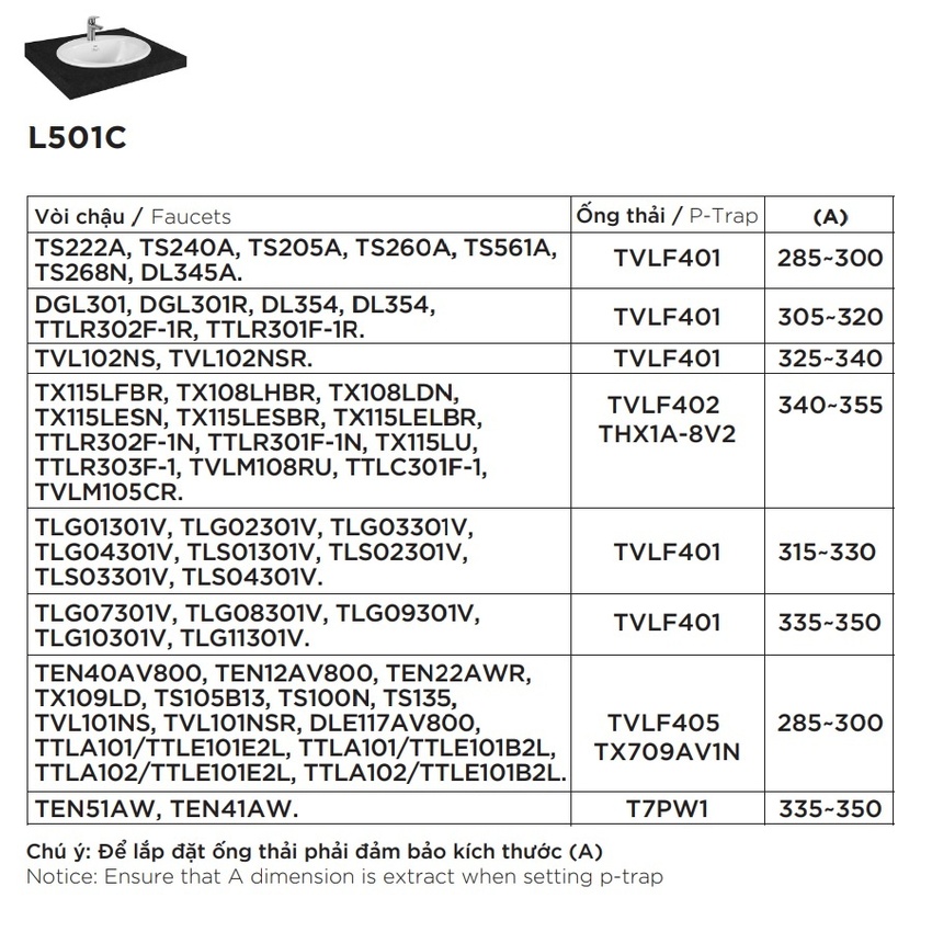 Chậu lavabo dương vành TOTO L501C