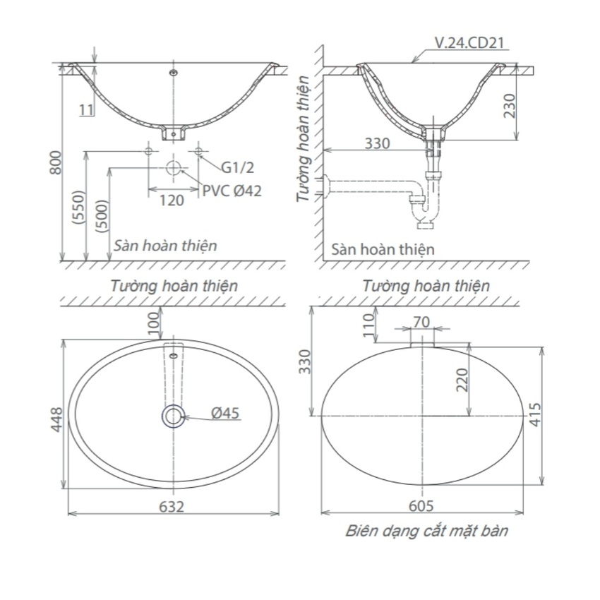 Khám phá chậu lavabo dương vành Viglacera CD21 với thiết kế tinh tế, chất liệu bền đẹp, hoàn hảo cho không gian phòng tắm hiện đại của bạn.