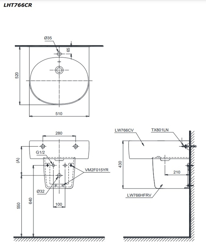 Chậu lavabo treo tường TOTO LHT766CR chân lửng – Sự lựa chọn hoàn hảo cho không gian phòng tắm của bạn