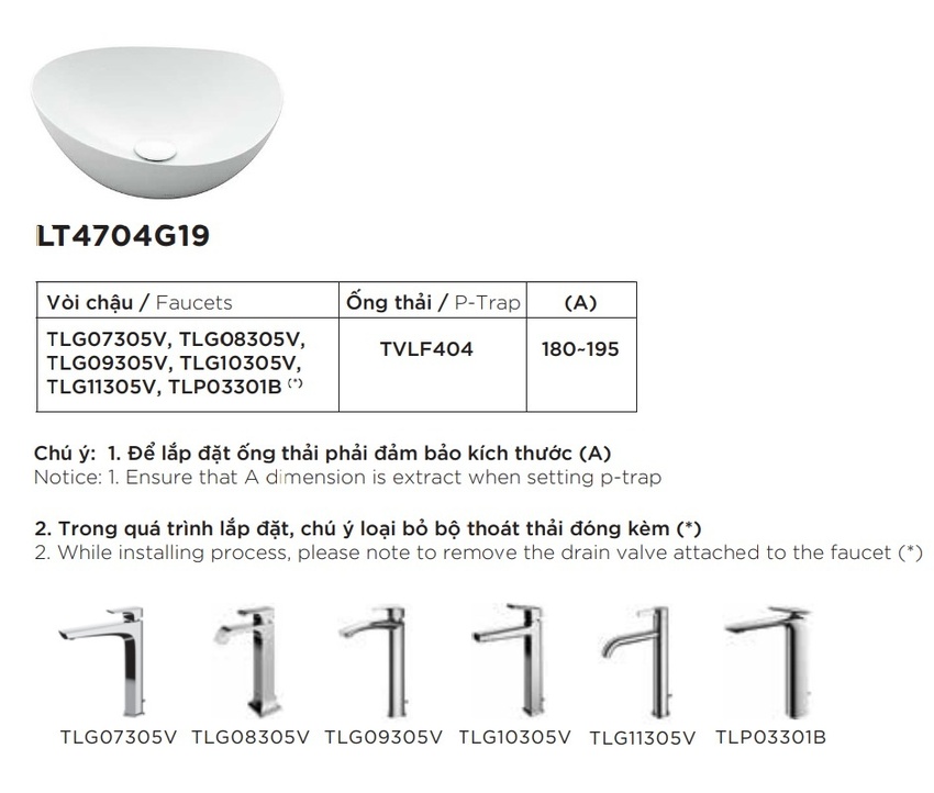 Được trang bị bộ thoát thải VM5D419V kèm theo, Chậu rửa TOTO LT4704G19 vừa dễ lắp đặt, vừa đảm bảo hiệu suất sử dụng vượt trội. Sự kết hợp giữa thẩm mỹ và công năng này tạo nên một sản phẩm không thể thiếu trong mỗi gia đình hiện đại.