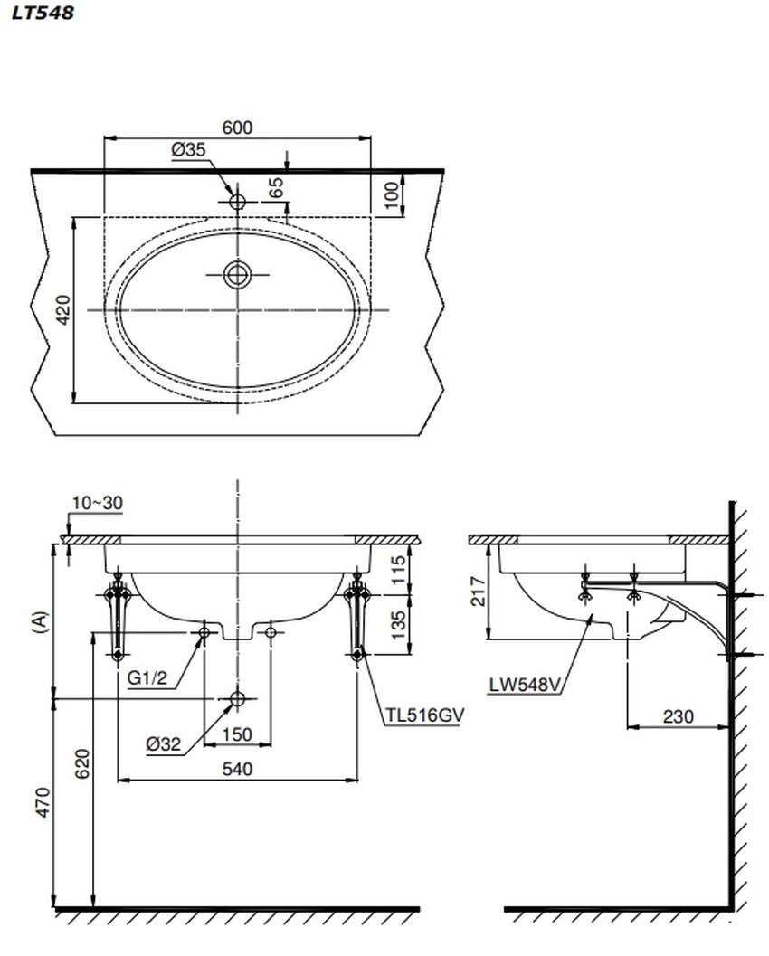 Chậu rửa mặt lavabo âm bàn TOTO LT548